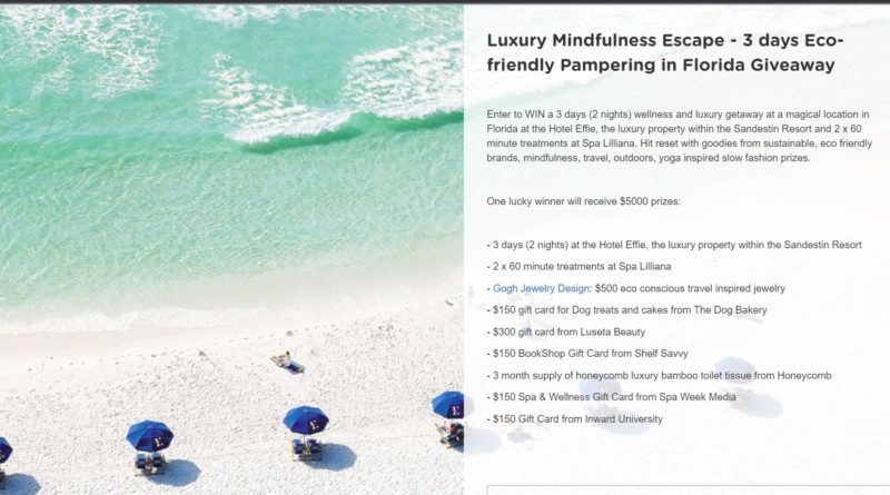 This luxurious and eco-friendly getaway could be just what you need! One lucky winner will receive $5000 in prizes, including 3 days (2 nights) at the Hotel Effie, the luxury property within the Sandestin Resort, 2 x 60 minute treatments at Spa Lilliana, and goodies from sustainable, eco-friendly brands, mindfulness, travel, outdoors, yoga inspired slow fashion prizes. You’ll be able to hit reset and enjoy some pampering with goodies from Gogh Jewelry Design, The Dog Bakery, Luseta Beauty, Shelf Savvy, Honeycomb, Spa Week Media, and Inward University.